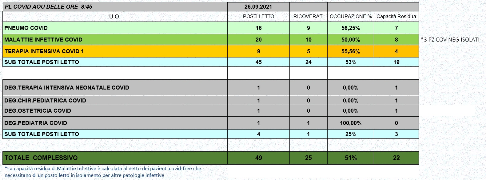 Situazione posti letto reparti Covid 26 settembre 2021 - ore 8.45.jpg