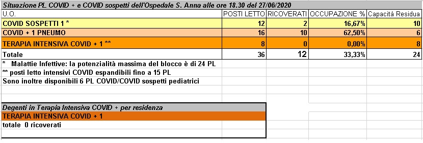 Situazione posti letto reparti Covid - 27 giugno 2020 - ore 18.30.jpg