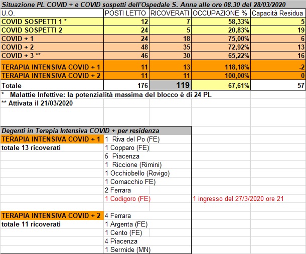 Situazione posti letto reparti Covid - 28 marzo 2020 - ore 8.30.jpg