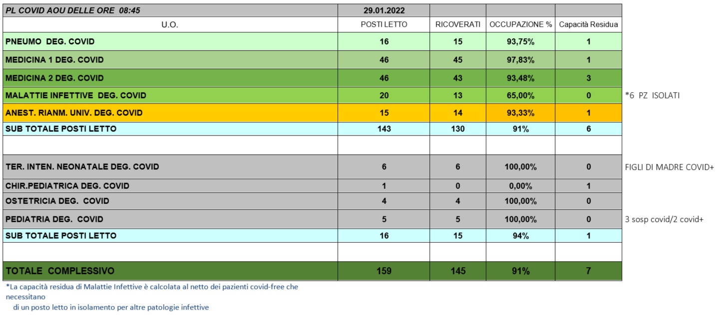 Situazione posti letto reparti Covid 29 Gennaio 2022 - ore 8.45.jpg