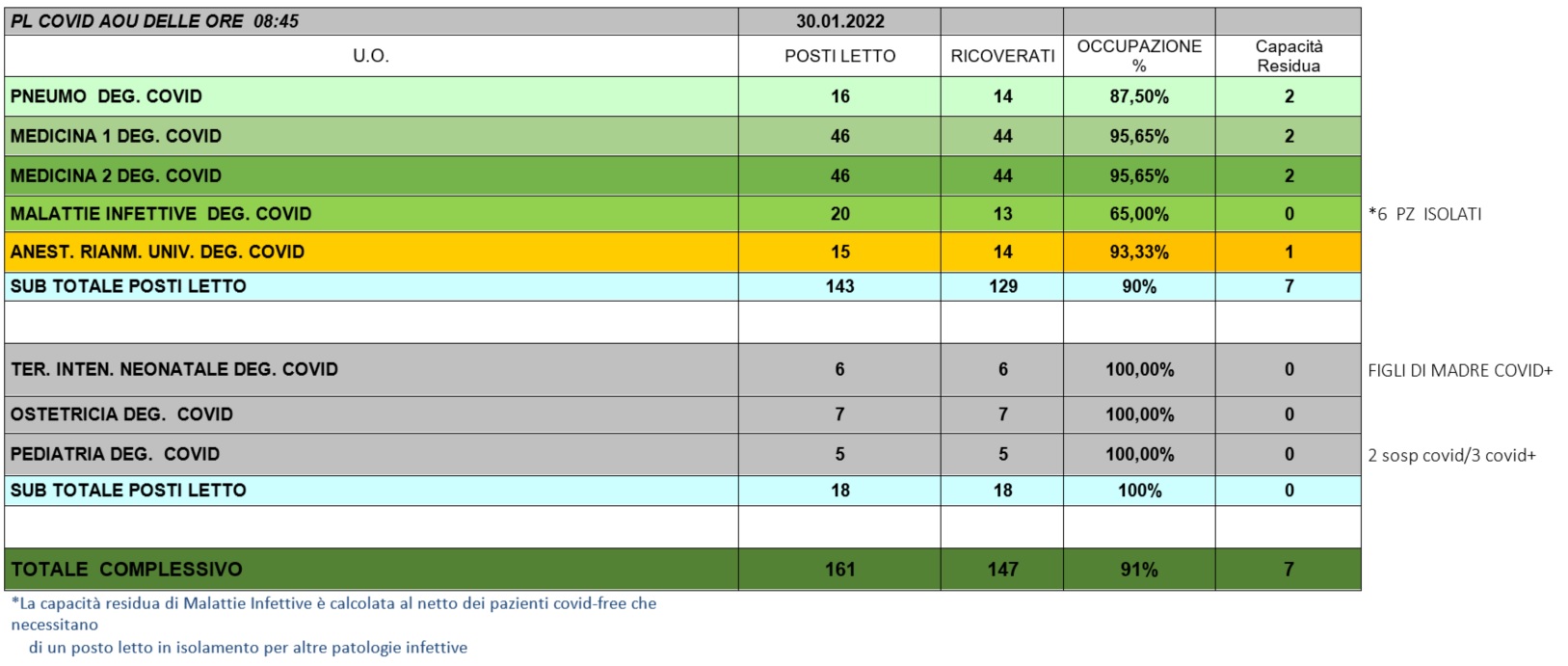 Situazione posti letto reparti Covid 30 Gennaio 2022 - ore 8.45.jpg