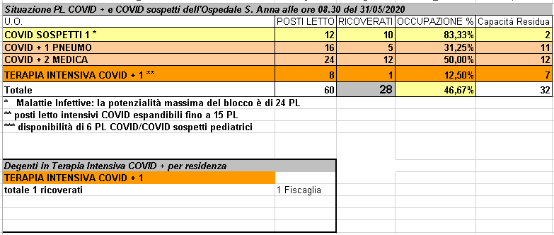 Situazione posti letto reparti Covid - 31 maggio 2020 - ore 8.30.png
