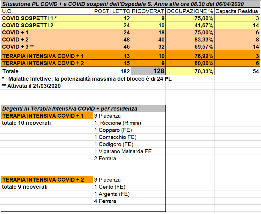 Situazione posti letto reparti Covid - 6 aprile 2020 - ore 8.30.png