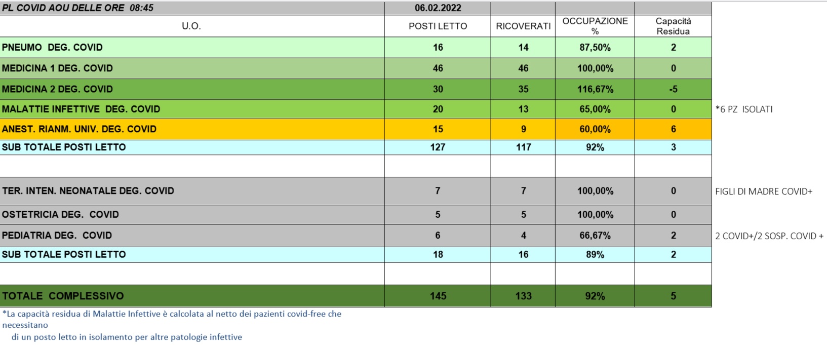 Situazione posti letto reparti Covid 6 Febbraio 2022 - ore 8.45.jpg