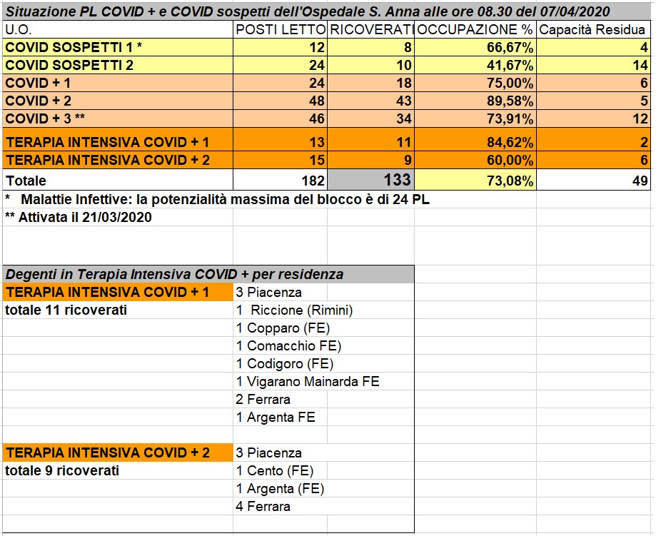 Situazione posti letto reparti Covid - 7 aprile 2020 - ore 8.30.jpeg