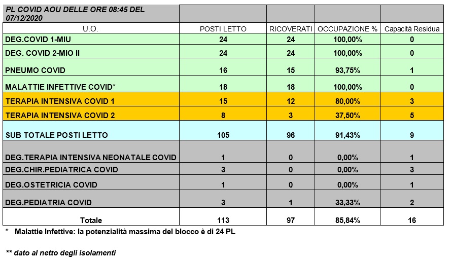 Situazione posti letto reparti Covid -7 dicembre 2020 - ore 8.45.jpg