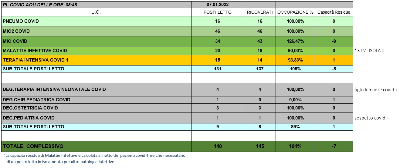 Situazione posti letto reparti Covid 7 Gennaio 2022 - ore 8.45.jpg