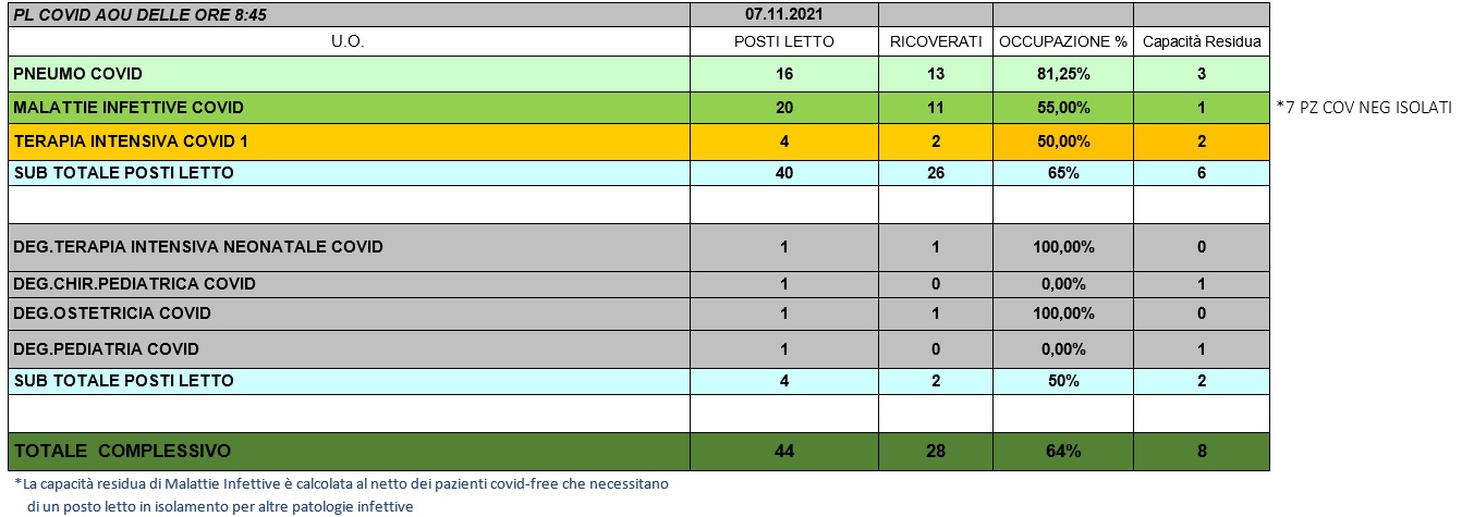 Situazione posti letto reparti Covid 7 novembre 2021 - ore 8.45.jpg