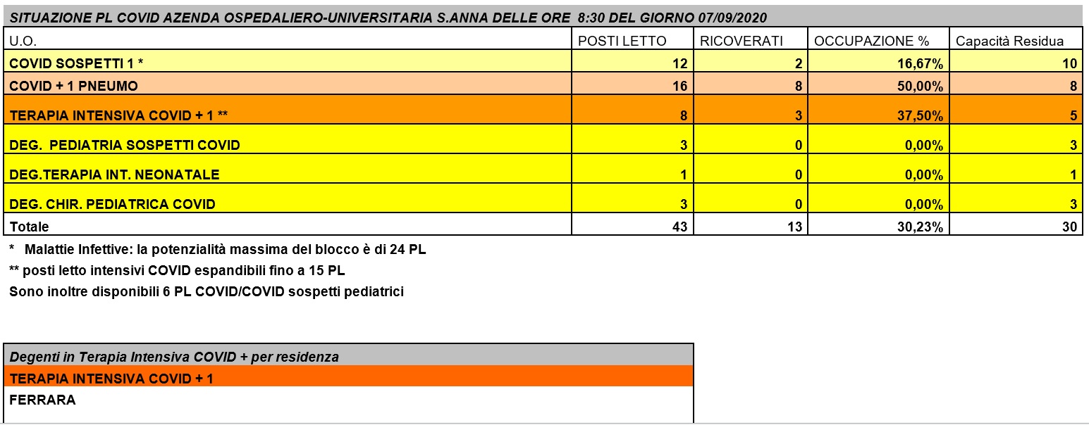Situazione posti letto reparti Covid - 7 settembre 2020 - ore 8.30.jpg