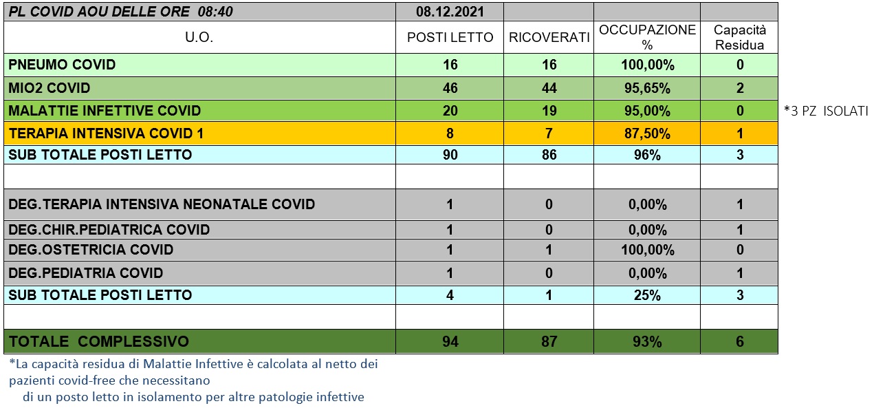 Situazione posti letto reparti Covid 8 dicembre 2021 - ore 8.45.jpg