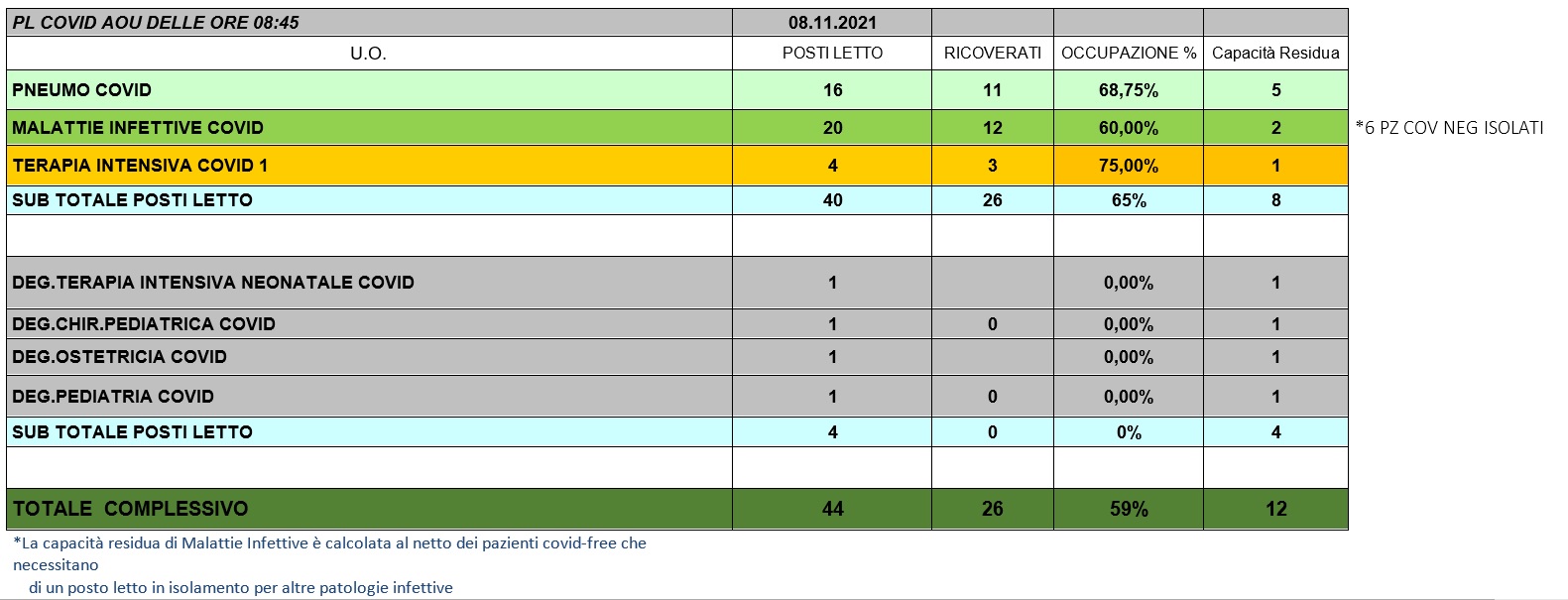 Situazione posti letto reparti Covid 8 novembre 2021 - ore 8.45.jpg