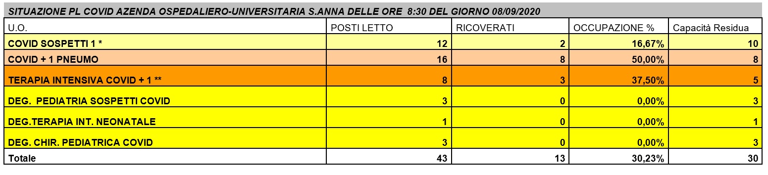 Situazione posti letto reparti Covid - 8 settembre 2020 - ore 8.30.jpg