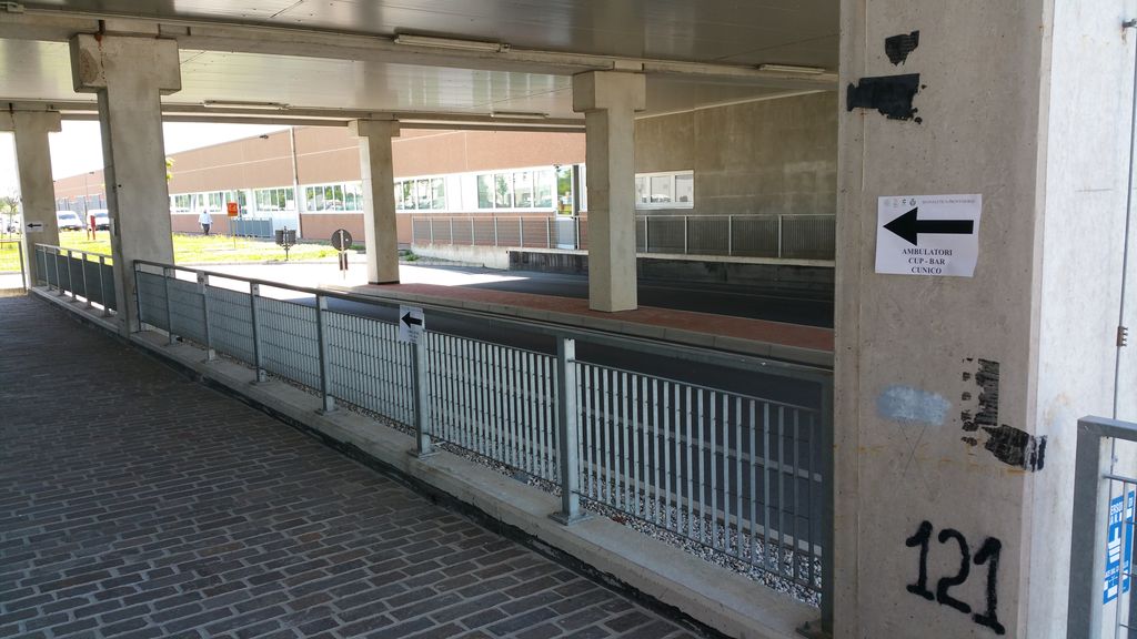 13-06-2016 - sesto intervento - Chiusura Ingresso 2 per pavimentazione colorata e colorazione pareti snodo F + snodo E Piano Terra (come raggiungere CUP, BAR, Ambulatori e CUNICO-Centro Prelievi).jpg