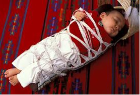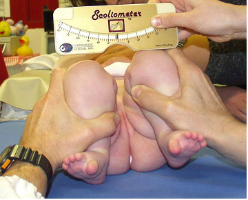 Quest’ultimo è il fattore di rischio più importante perché condiziona la posizione degli arti inferiori che rimangono chiusi e stesi, cosa che interferisce col normale sviluppo dell’acetabolo; questo avviene anche dopo la nascita, se il bambino viene fasciato n questo modo, come nella tradizione di alcuni popoli (fig.8).