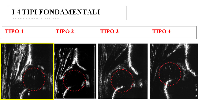 Oltre alla visita medica si possono utilizzare esami strumentali e fra questi l’ecografia rappresenta il più diffuso e il più utile nel neonato e nel lattante. Esistono diverse tecniche ecografiche per la diagnosi di DEA, il più conosciuto e utilizzato in Italia e in Europa è il metodo di Graf. Questo metodo consiste nell’eseguire una scansione con ultrasuoni della regione dell’anca che permette di visualizzare l’articolazione in un piano ben preciso e quindi sull’immagine ottenuta individuare il tipo di anca secondo la classificazione di Graf: dalla descrizione morfologica e da determinate misure angolari derivano ben 10 tipi ecografici che vanno dall’anca normale a quella lussata con l’intermezzo di forme progressivamente più alterate e di disallineamento sempre maggiore della testa femorale. Questi 10 tipi possono essere raggruppati in 4 tipi fondamentali: tipo 1 normale, tipo 2 displasico, tipo 3 sublussato e tipo 4 lussato (fig. 12).