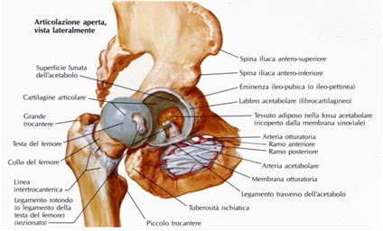 Si tratta di un insieme di anomalie sia della conformazione dell’articolazione dell’anca (ovvero l’acetabolo sul versante del bacino e la testa femorale su quello del femore) (fig. 6) che dei rapporti fra di esse cioè dall’instabilità dell’articolazione (ossia la facilità alla fuoriuscita della testa femorale) fino alla vera e propria lussazione della testa femorale, ovvero la fuoriuscita dalla sua sede naturale . La varietà dei quadri clinici rispecchia la difficoltà nel definire la malattia. La definizione Displasia Evolutiva dell’Anca è stata ideata negli anni ‘90 per cercare di comprendere in un unico termine le tante forme sotto cui si presenta.-